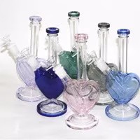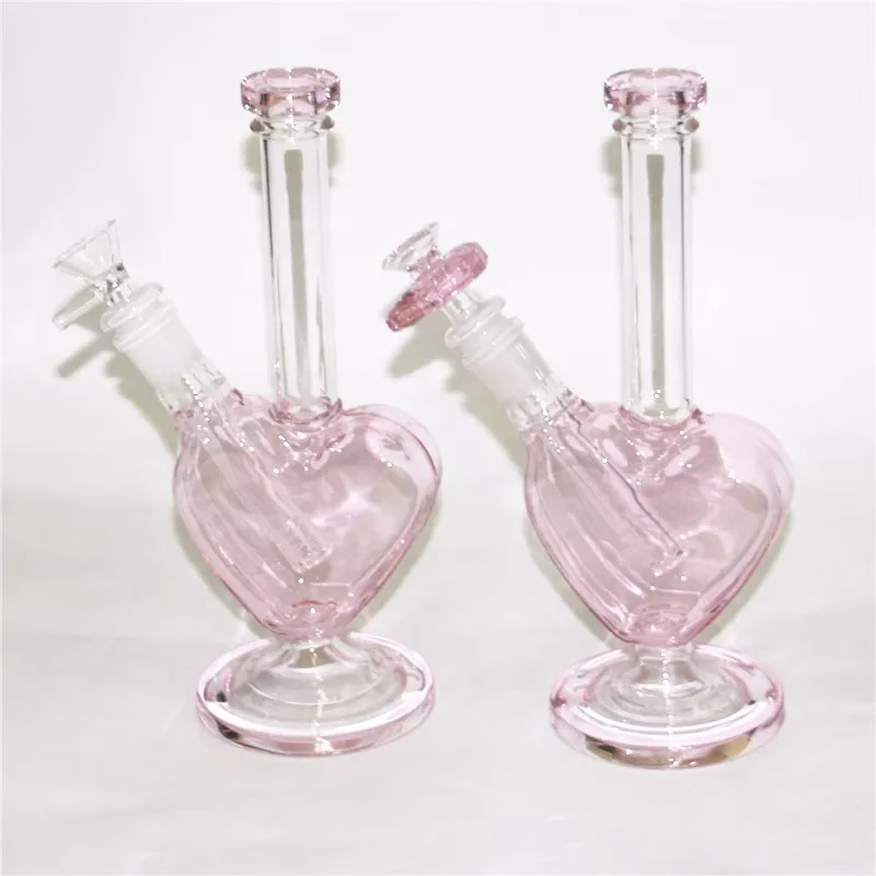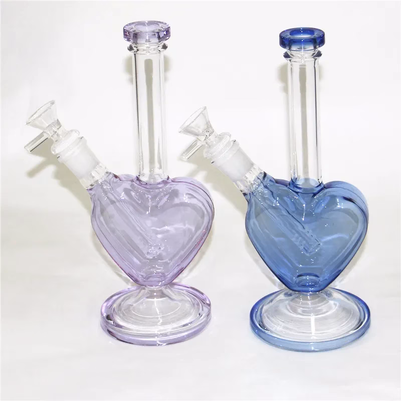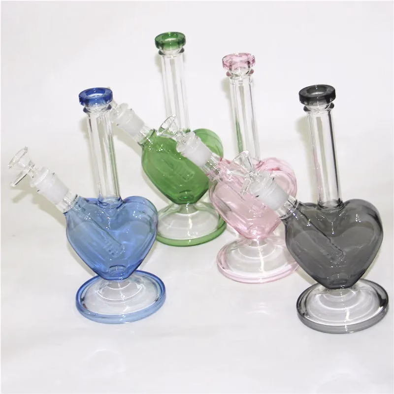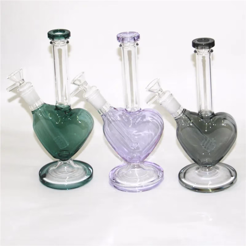 Heart Shape Pink Green Blue Color Hookahs Glass Bongs Water Pipes Oil Rig Dab Rigs with 14mm Smoking Dry Herb Bowls